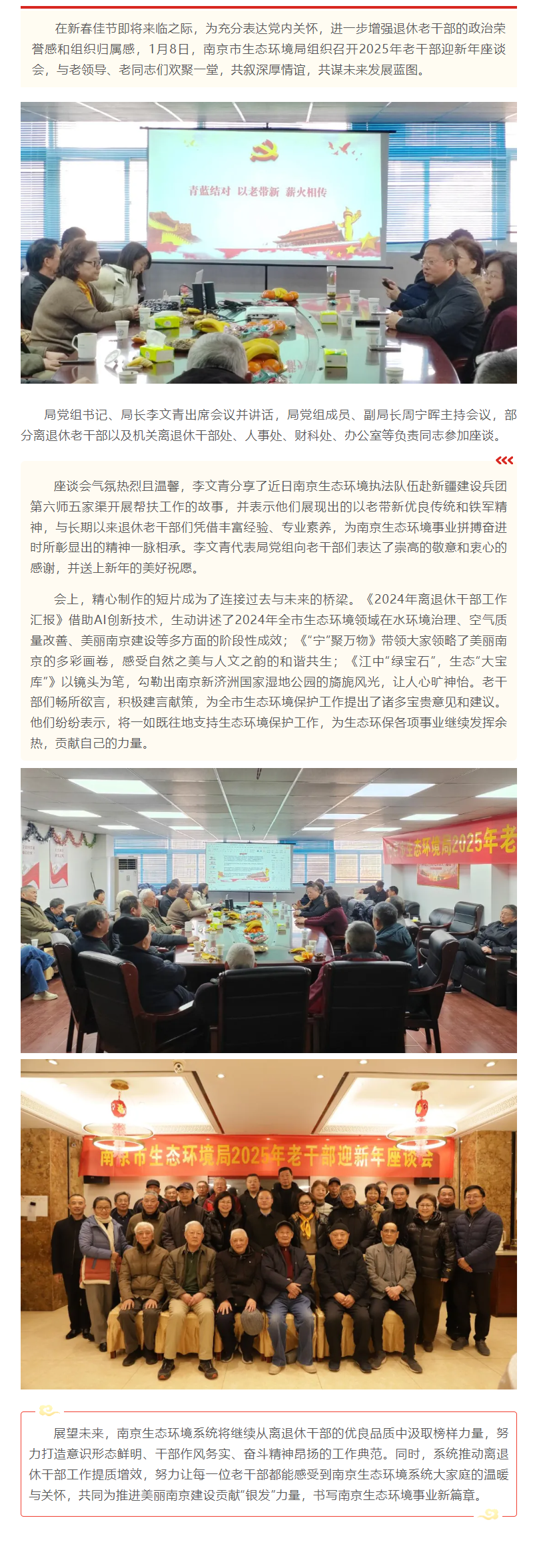 青蓝携手,薪火相传——南京市生态环境局召开2025年老干部迎新年座谈会