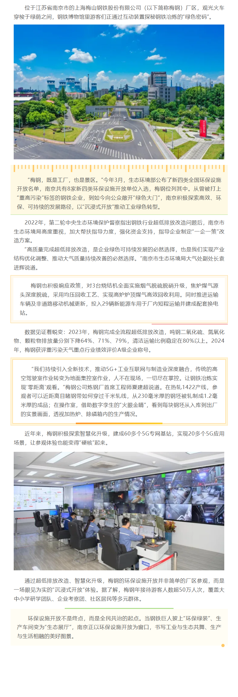 美丽中国先行区南京在实践 | 重污染钢铁企业敞开“绿色大门” 南京以“沉浸式开放”推动工业绿色转型