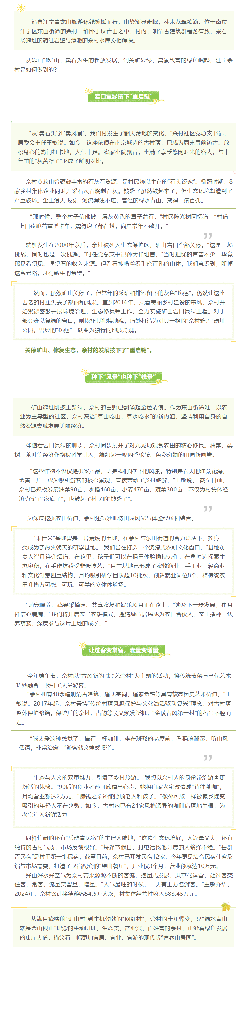“两山”回响看南京 | 从“灰黄矿山村”到“金陵古风第一村” 佘村书写“两山”转化南京答卷