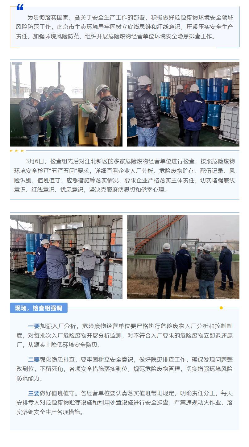 市生态环境局开展危险废物经营单位环境安全隐患排查工作