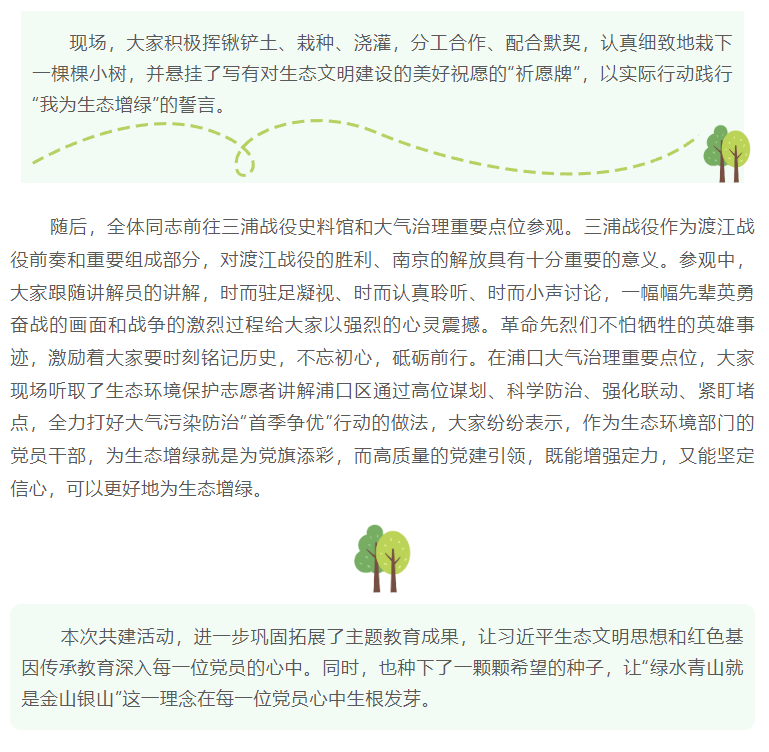 “我为生态增绿我为党旗添彩”——南京市生态环境局与浦口生态环境局开展主题党日共建活动