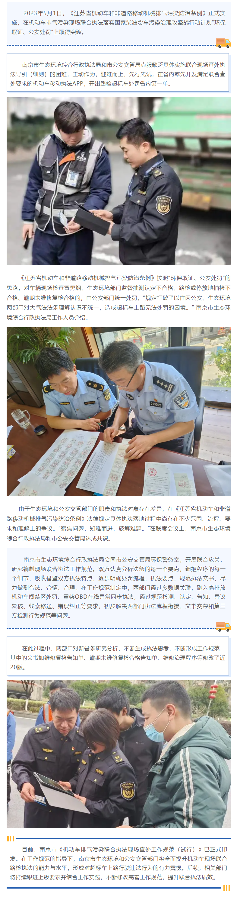 南京市出台机动车排气污染联合执法现场查处工作规范