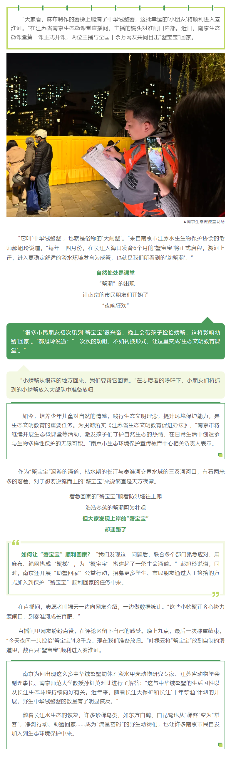【中国环境报】十余万网友一起“助蟹回家”