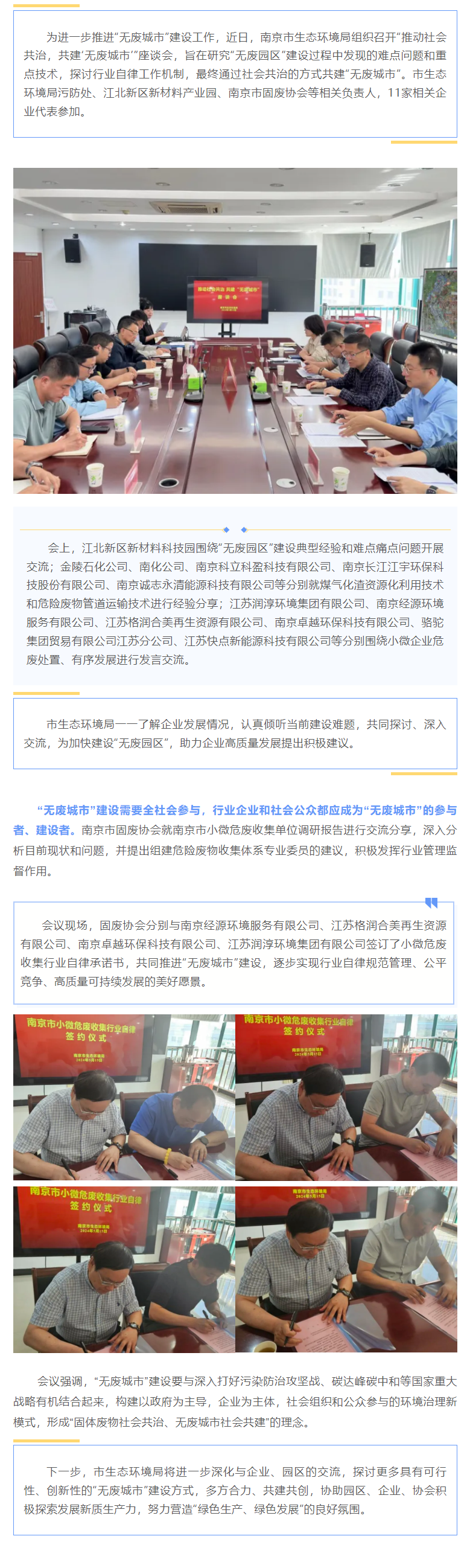 南京市生态环境局召开“推动社会共治,共建‘无废城市’”座谈会
