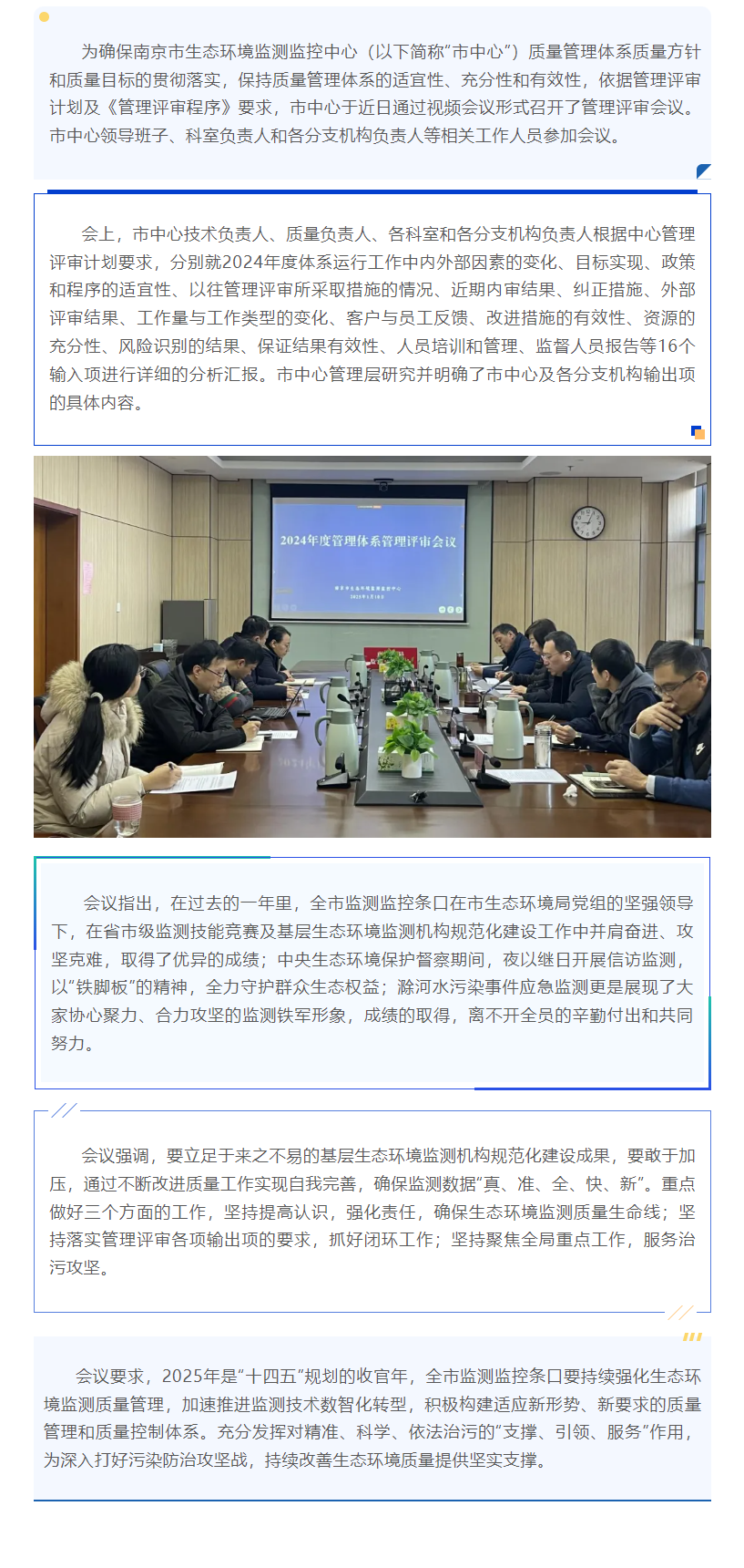 聚焦数据质量 促进能力提升——南京市生态环境监测监控中心召开2024年度管理评审会议