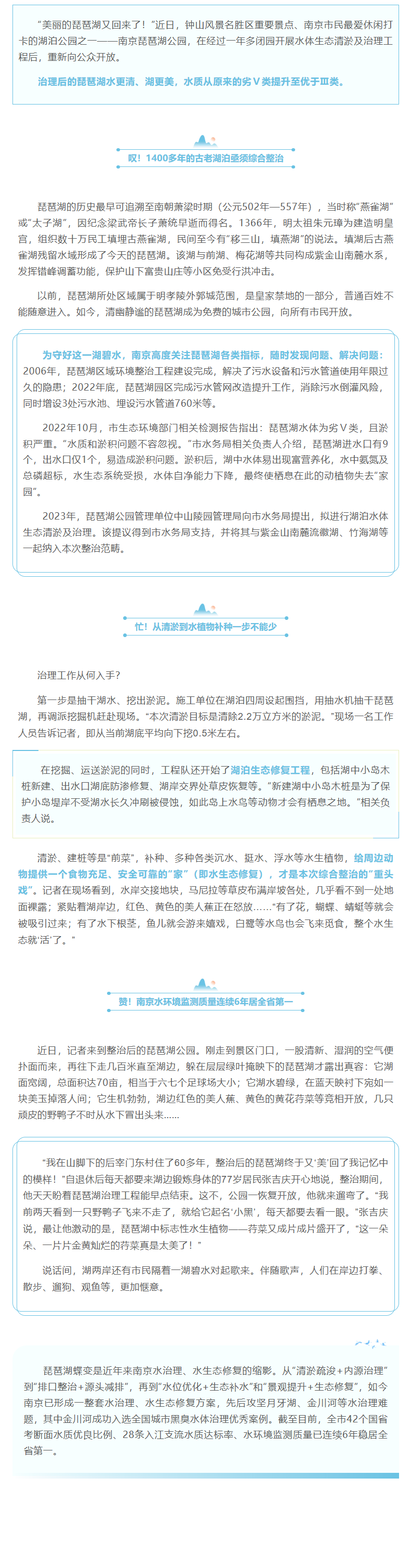 明城墙下,一湖碧水焕“新生”——南京琵琶湖水生态修复记