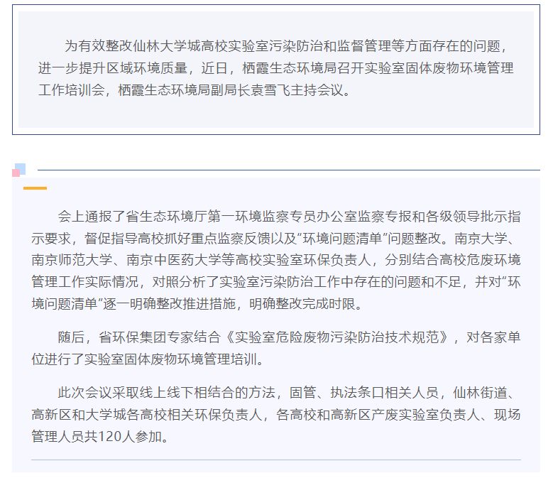 针对性辅导,清单式整改——栖霞生态环境局召开实验室固体废物环境管理工作培训会