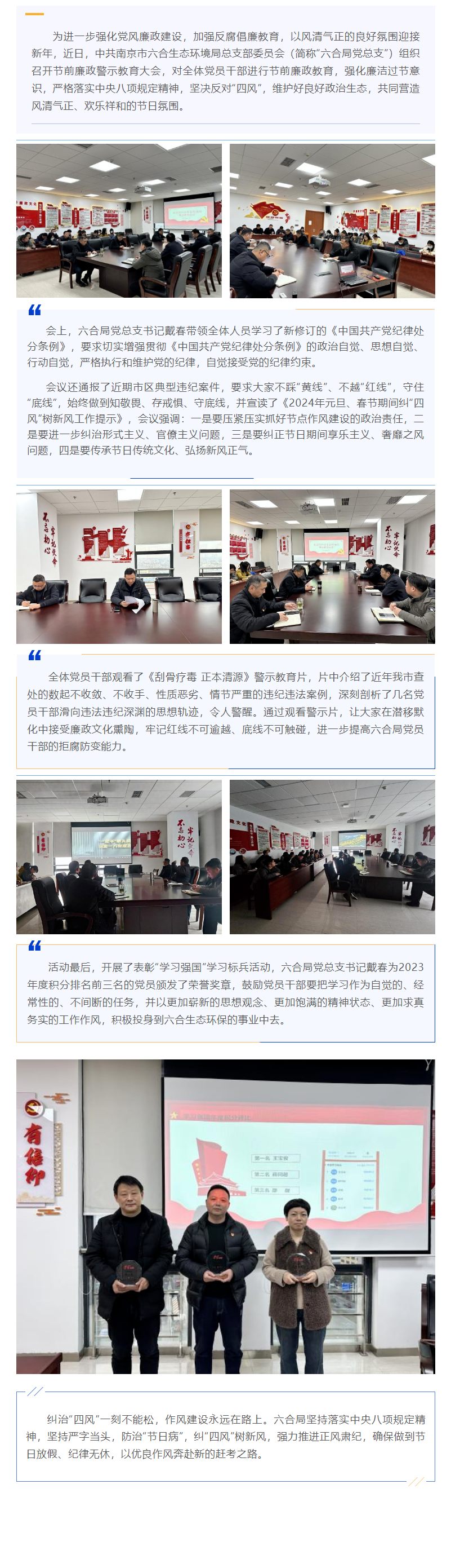 中共南京市六合生态环境局总支部委员会开展廉政警示教育大会