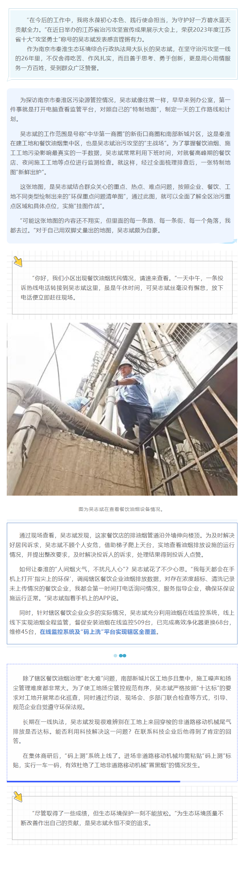【中国环境报】用双脚丈量出问题清单图——记南京秦淮生态环境综合行政执法局吴志斌