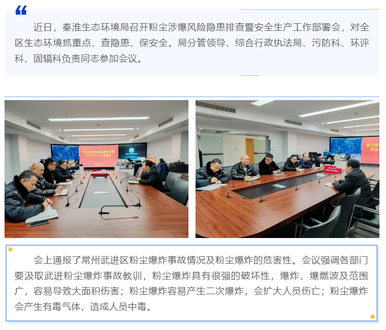 秦淮生态环境局召开粉尘涉爆风险隐患排查暨安全生产工作部署会