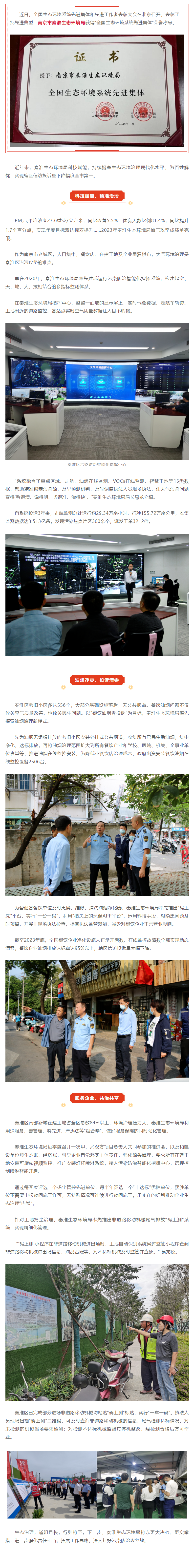 南京市秦淮生态环境局获评全国生态环境系统先进集体