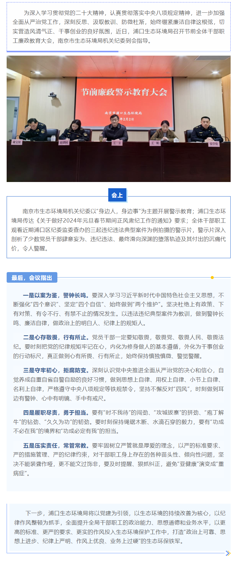浦口生态环境局召开节前廉政教育大会