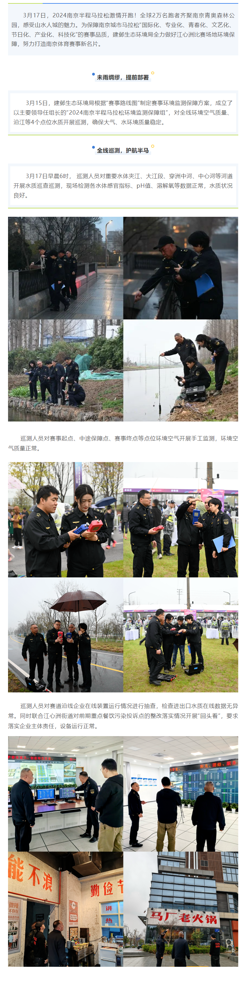 建邺生态环境局:全线巡测,护航南京半程马拉松