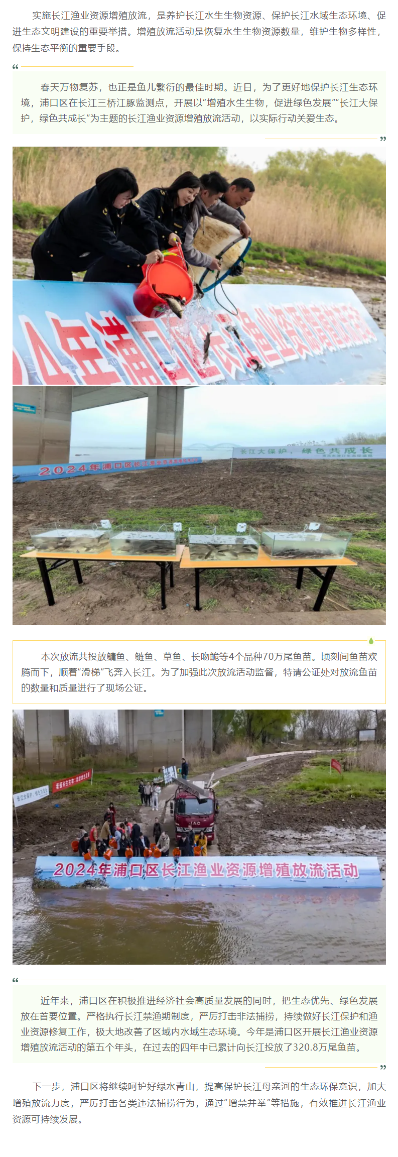 浦口区:增殖放流,万尾鱼苗“安家”长江