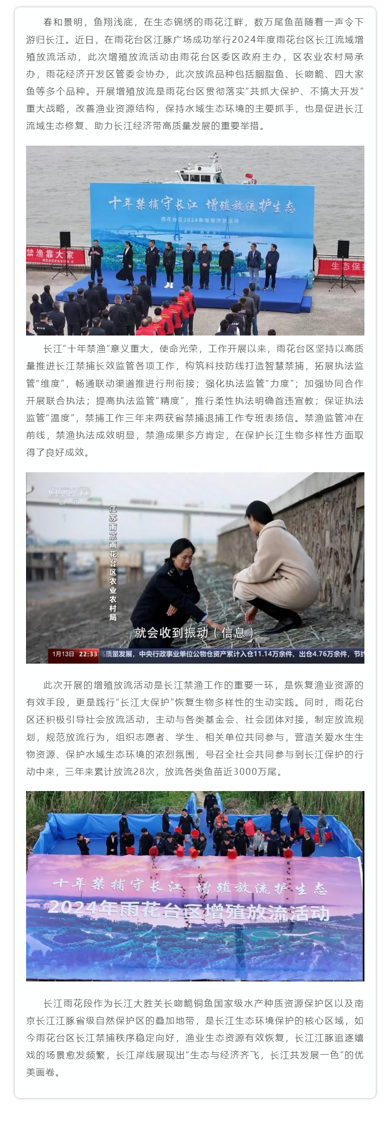 雨花台区:十年禁捕守长江,增殖放流护生态