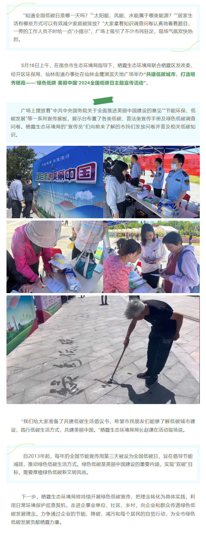 全国低碳日|共建低碳城市,打造明秀栖霞——栖霞生态环境局举办“绿色低碳 美丽中国”主题宣传活动