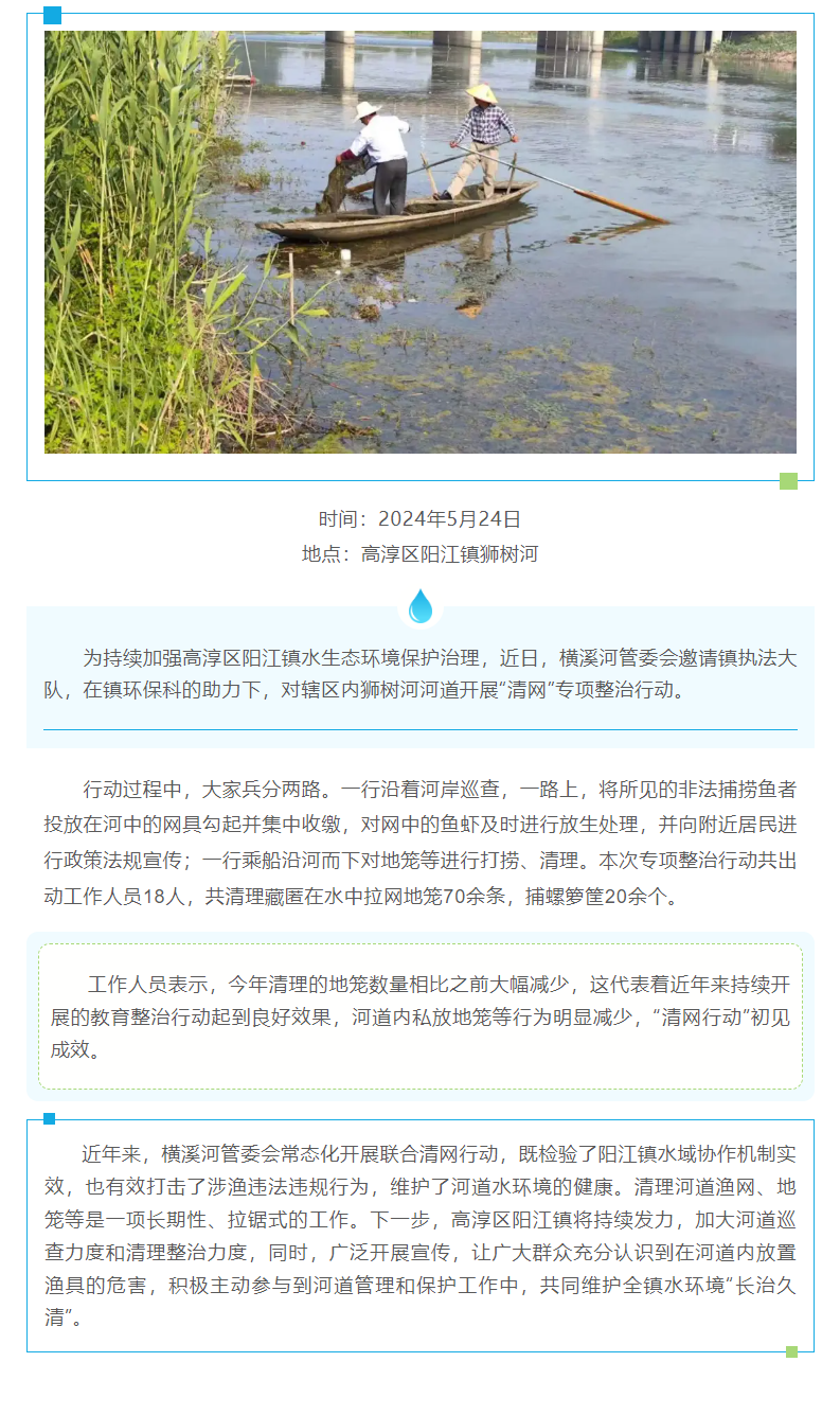 高淳区:守护水域生态安全,“清网行动”持续发力
