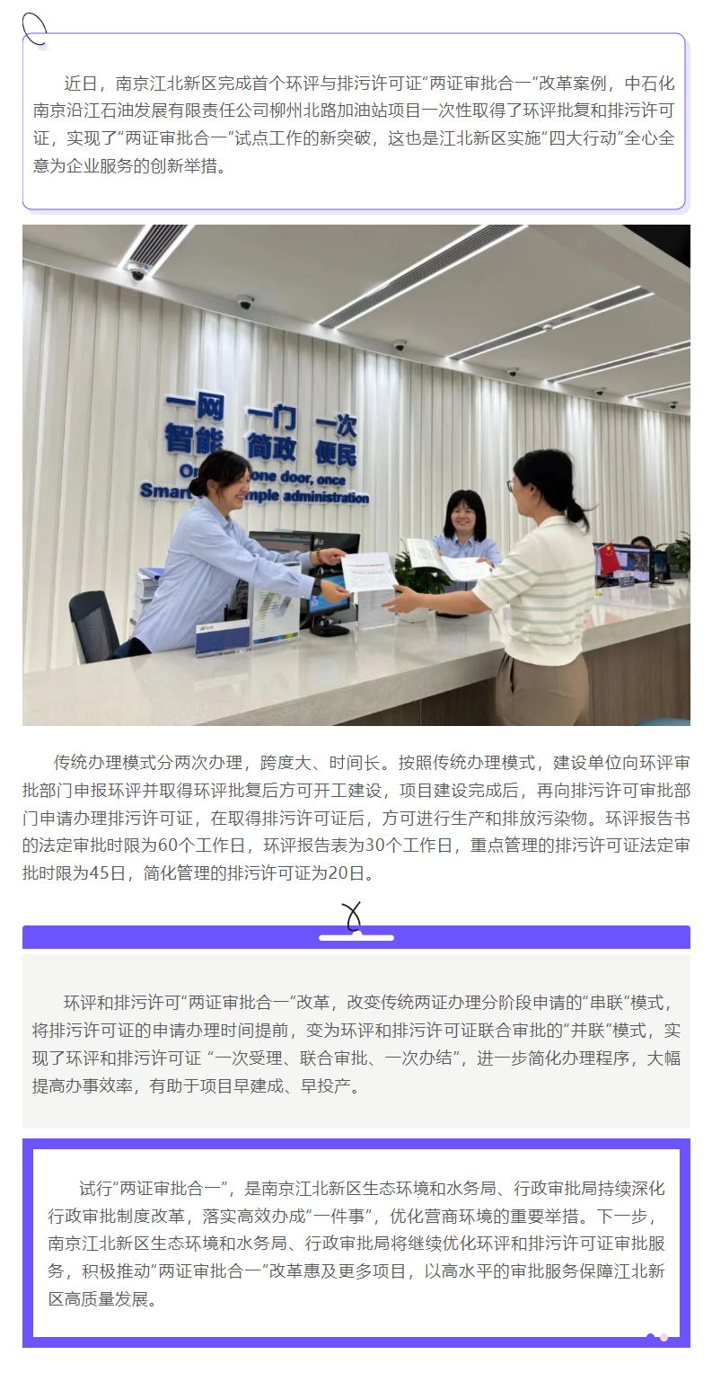 江北新区完成首个环评与排污许可证“两证审批合一”案例