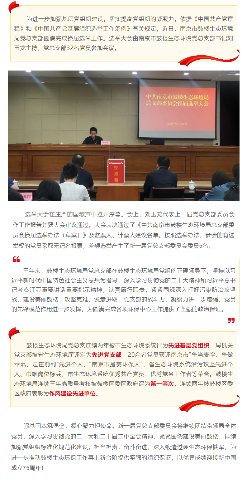 换届选举启新程 挺膺担当再出发——中共南京市鼓楼生态环境局总支部换届选举党员大会顺利召开
