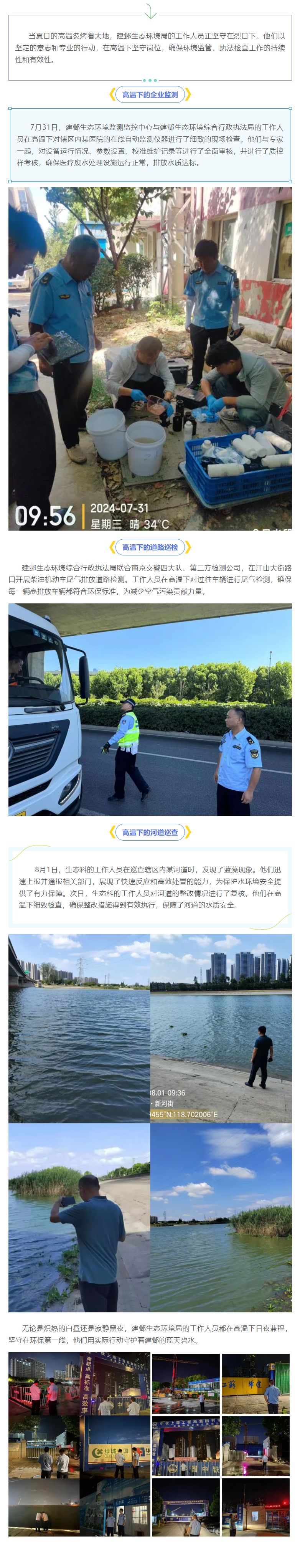 高温下的环保人|坚守岗位 不畏酷暑 守护建邺的蓝天碧水