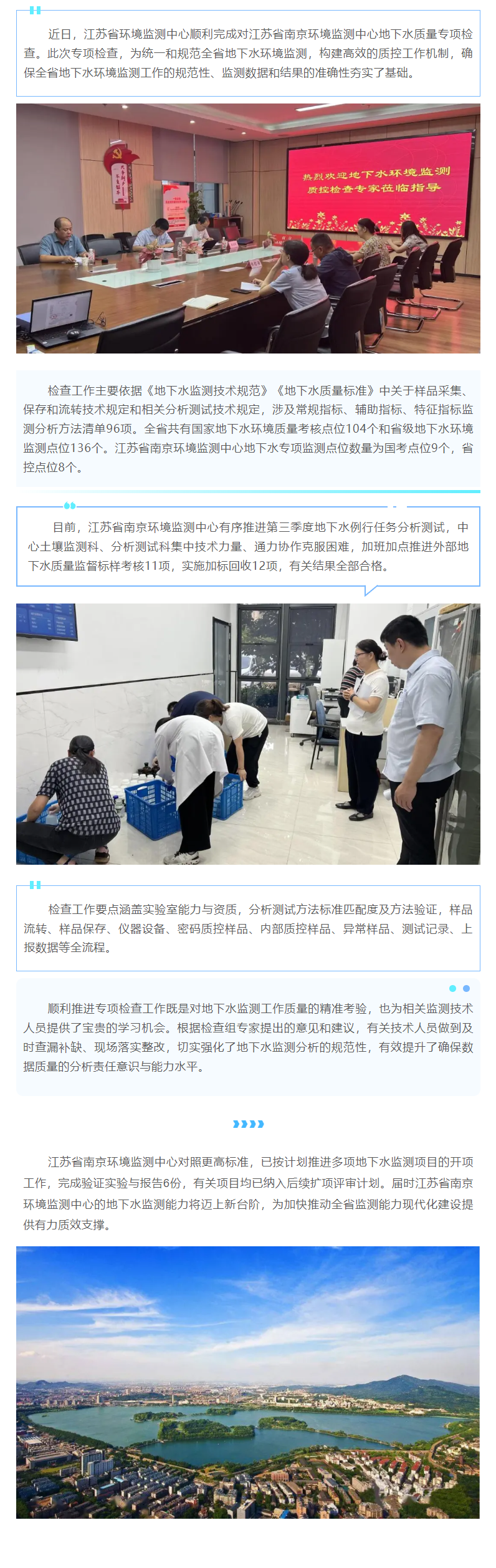 质效并举,江苏省南京环境监测中心顺利通过江苏省地下水质量专项检查