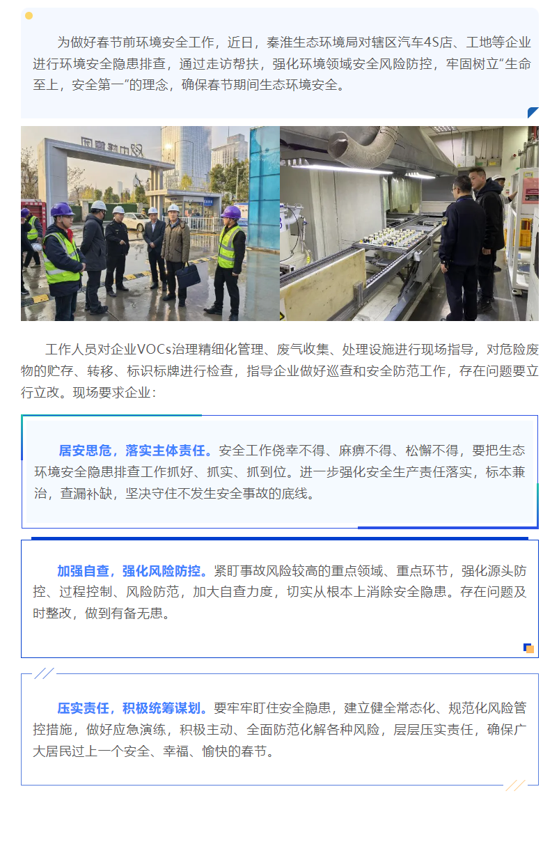 秦淮生态环境局严把岁末“节前关”,筑牢生态环境“安全线”