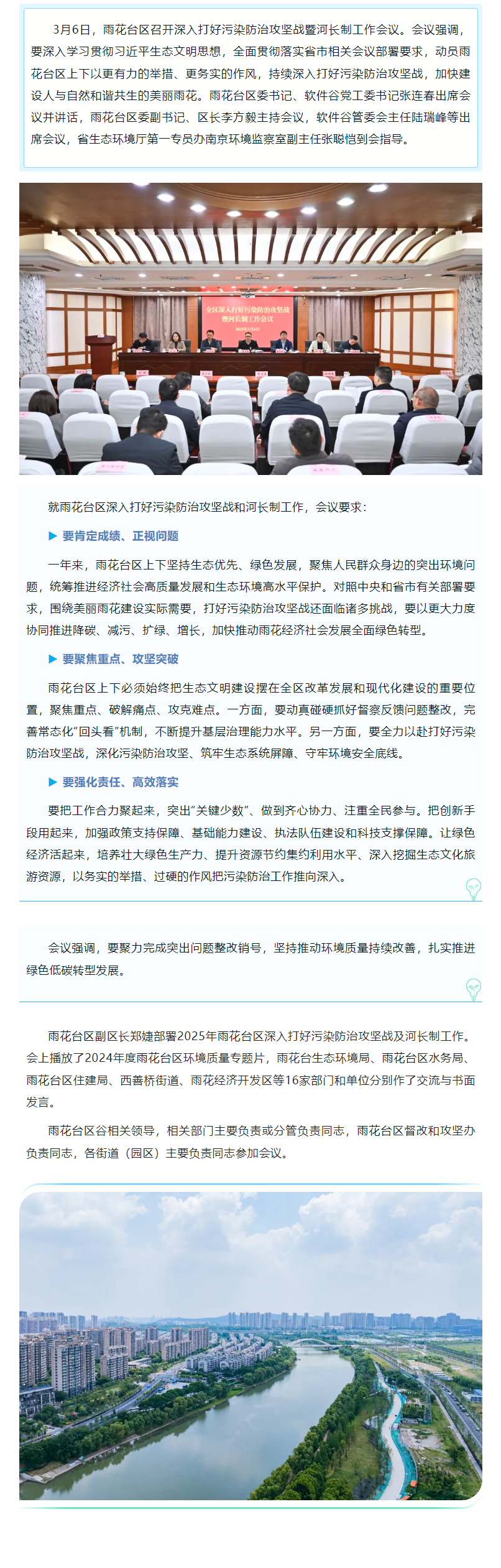 雨花台区召开深入打好污染防治攻坚战暨河长制工作会议