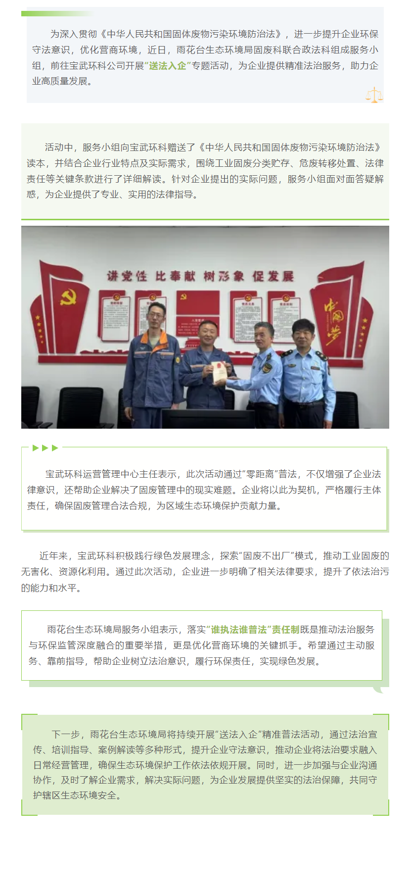雨花台生态环境局“送法入企” 精准护航企业绿色发展