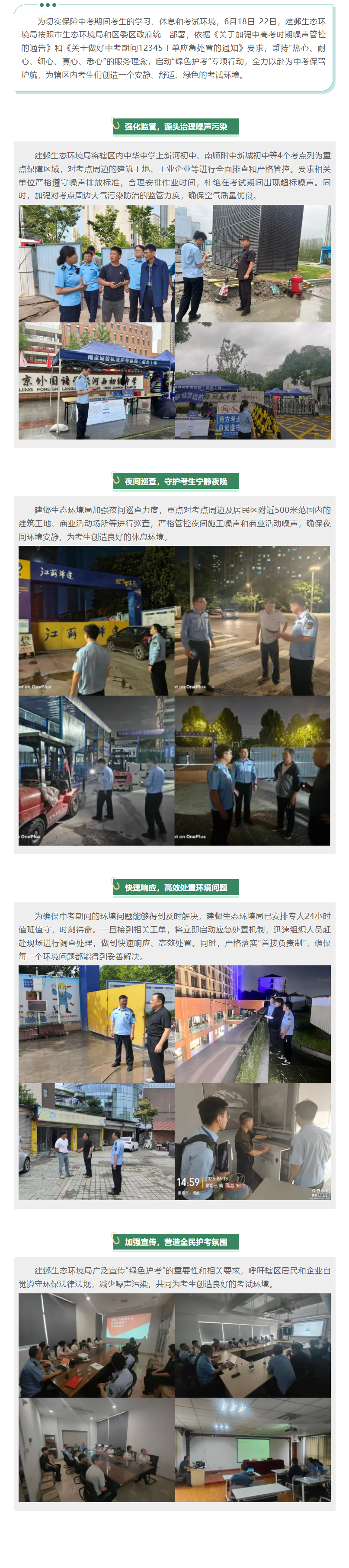 绿色护考|建邺生态环境局开启“绿色护考”模式 为中考保驾护航