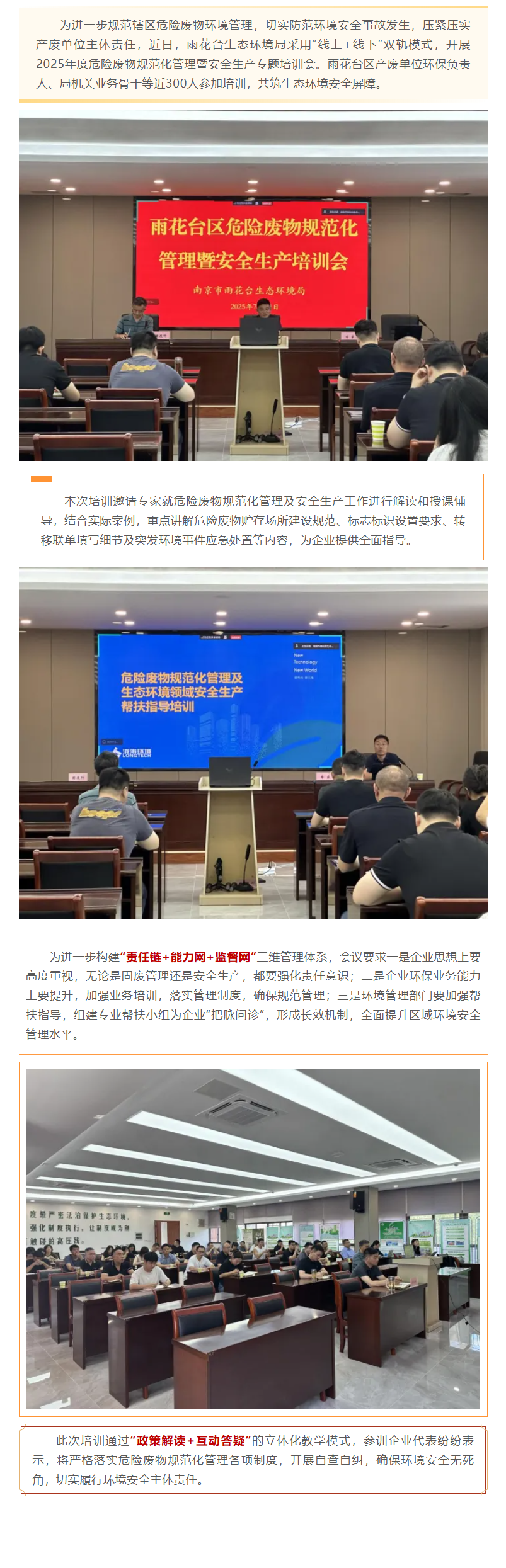 筑牢环境安全防线——雨花台区开展危险废物规范化管理专题培训