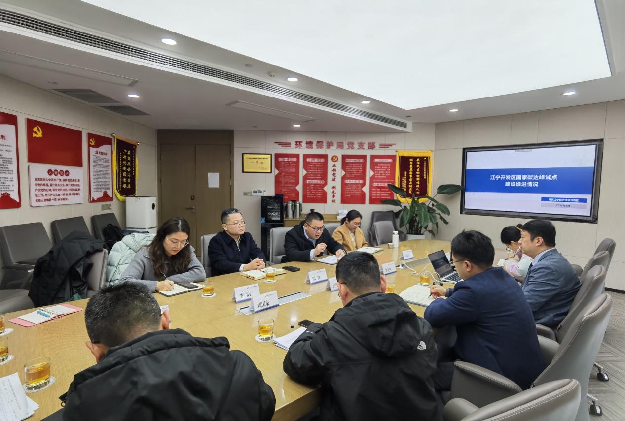 江宁经开区是国家级经济技术开发区,2023年11月获批成为全国首批国家级碳达峰试点园区。江宁经开区工作人员就国家碳达峰试点建设情况做了详细汇报,田锋院长介绍了我院的基本情况和对全市双碳工作支撑情况,杨峰所长就碳普惠平台建设、碳污融合清单等情况做了汇报。双方还就碳市场服务、碳排放核算标准、碳普惠应用场景、产品碳足迹、碳监测应用等进行了深入探讨。