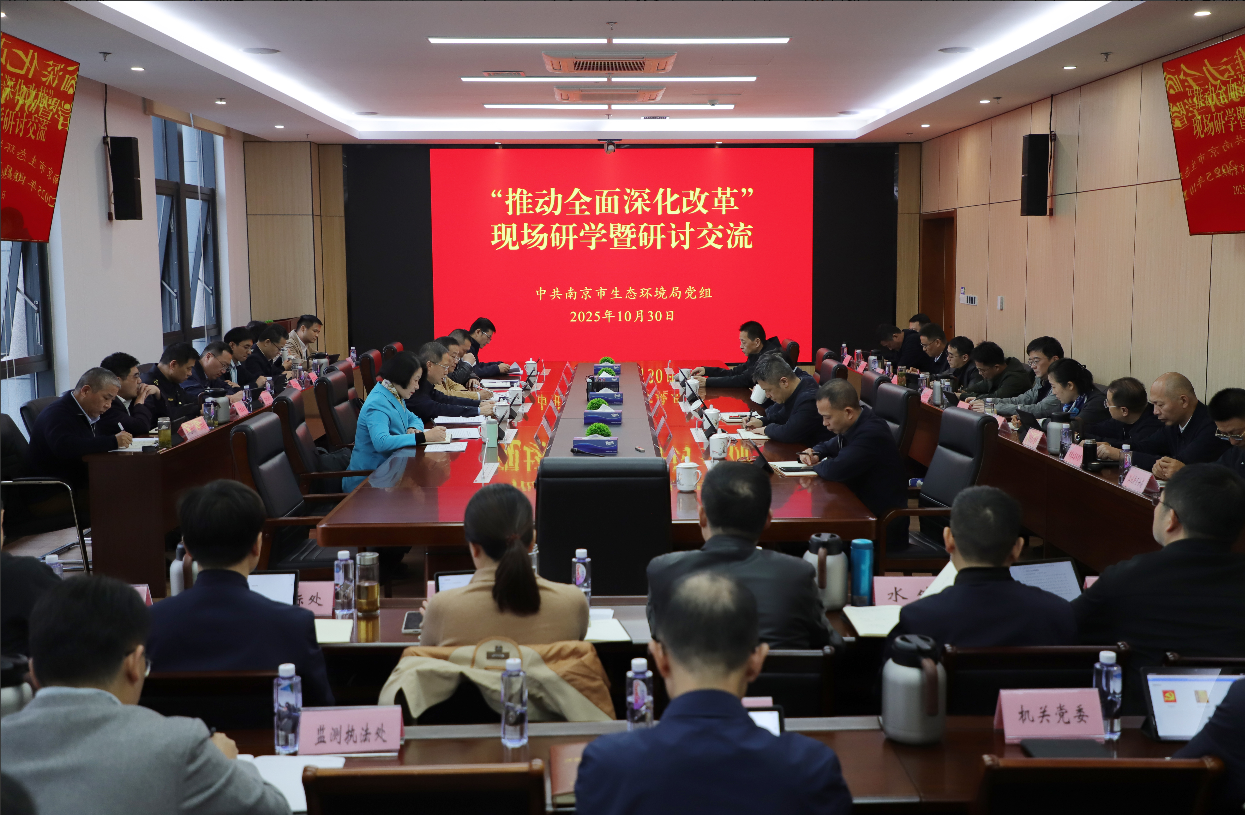 10月30日,市生态环境局党组理论学习中心组开展“推动全面深化改革”现场研学暨研讨交流,通过“现场见学+集中研讨”形式,深入学习领会习近平总书记关于全面深化改革的重要论述,沉浸式感受生态环境领域技术革新成果与廉政建设新风貌,为全面深化改革凝聚思想共识、明确实践路径。局党组书记、局长李文青主持学习研讨并讲话,市委市级机关工委一级调研员薛岳率队列席旁听。局党组成员、派驻纪检监察组领导、其他局领导,江北新区分局、各派出生态环境局、机关各处室、直属单位主要负责同志参加会议。