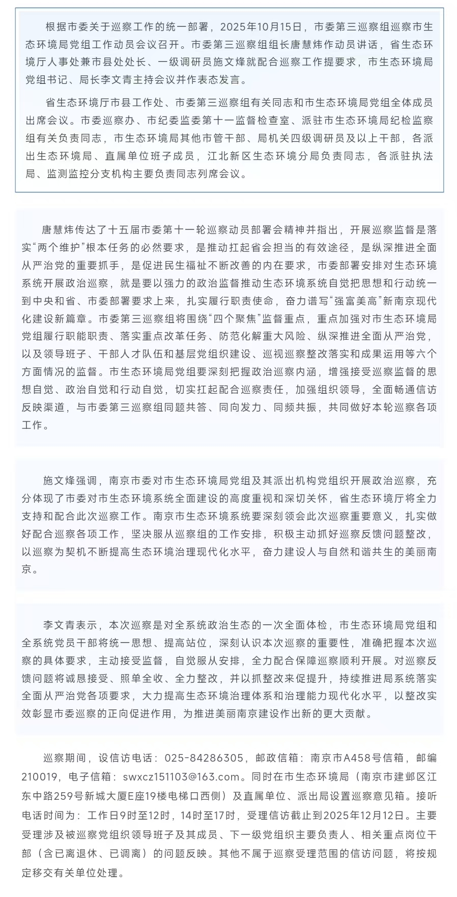 市委第三巡察组巡察市生态环境局党组工作动员会召开