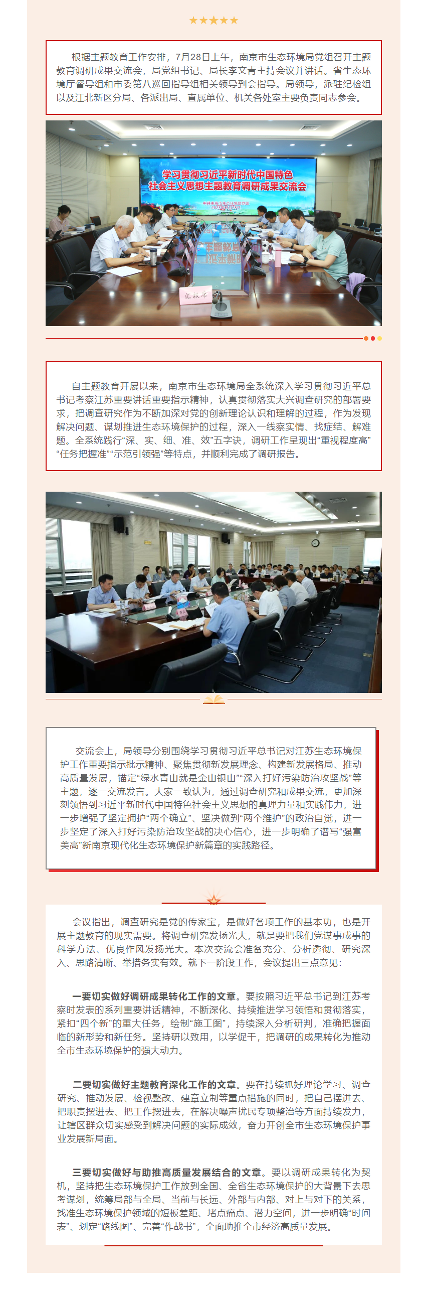 南京市生态环境局召开学习贯彻习近平新时代中国特色社会主义思想主题教育调研成果交流会